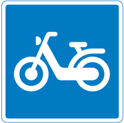 Anbefalet rute for lille knallert. Tavlerne angiver vej, sti eller lignende, der hensigtsmæssigt kan benyttes af de færdselsarter, der er angivet med symbol.
